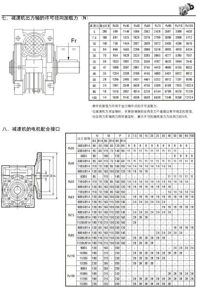 減速機出力軸的許可徑向加載力(N)減速機的電機配合接口